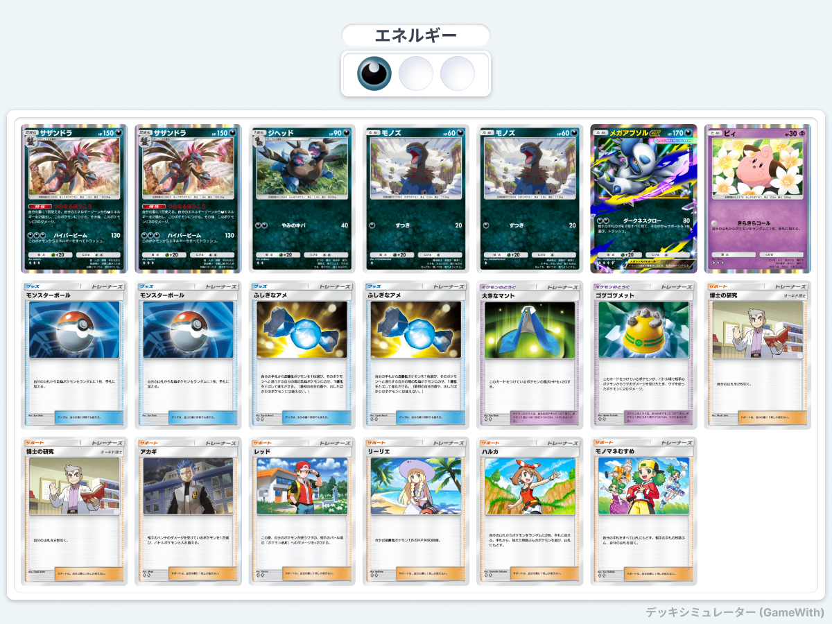 序盤の手札補充役。必要なパーツを揃え、2ターン目進化の確率を上げます。