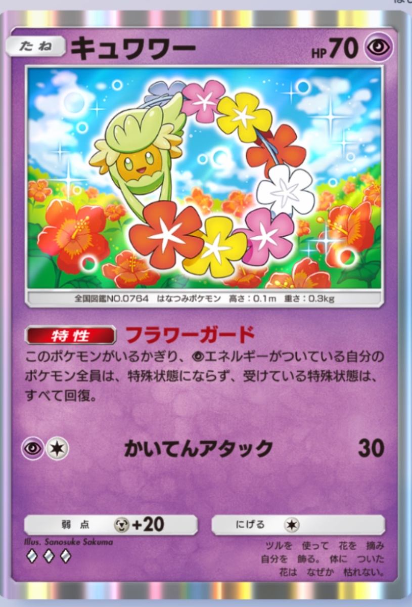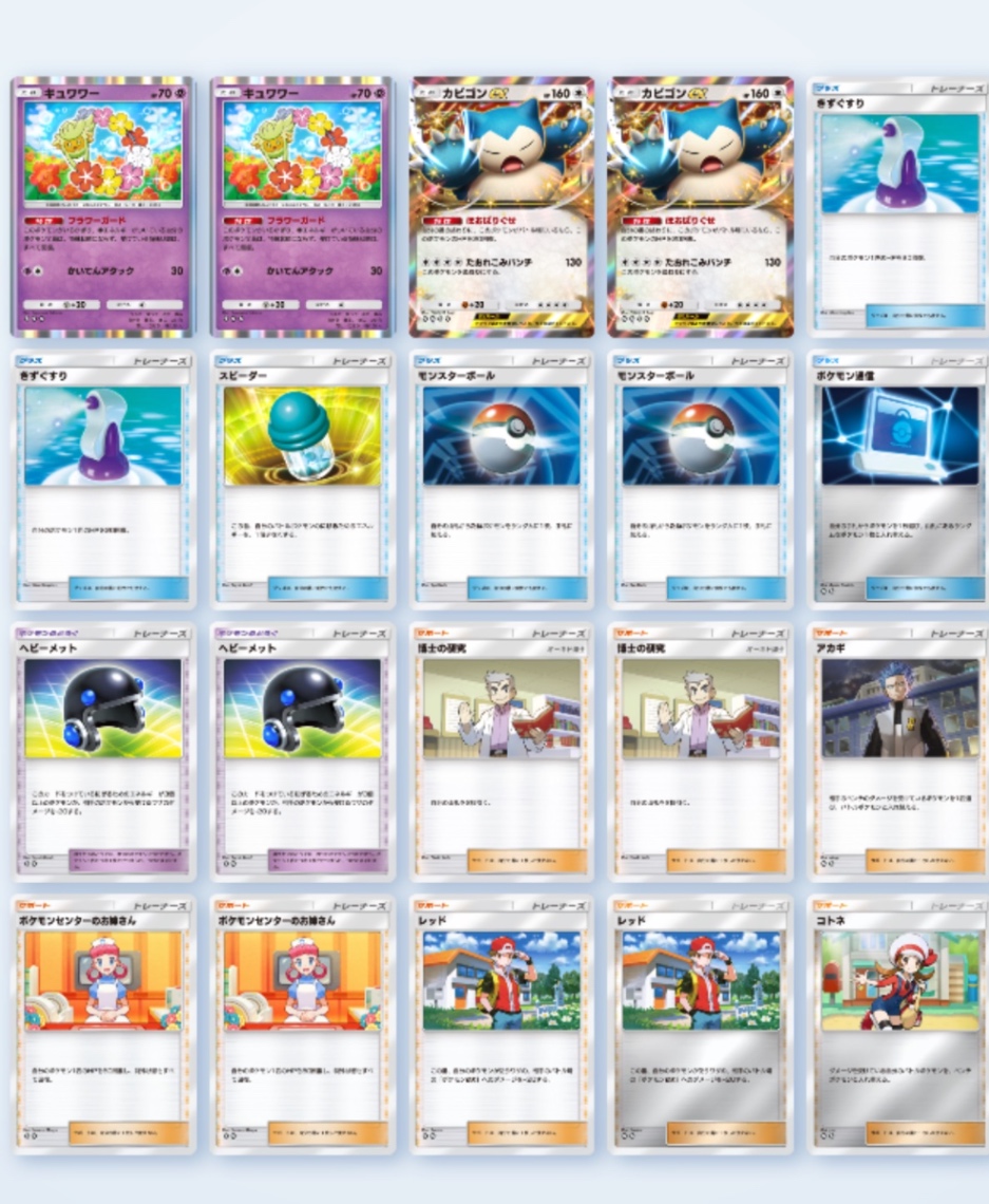 カビゴンexは攻撃力130と高威力ながら、攻撃すると眠り状態になってしまうデメリットがある。キュワワーの特性でデメリットを打ち消しつつ、対面性能を向上させる