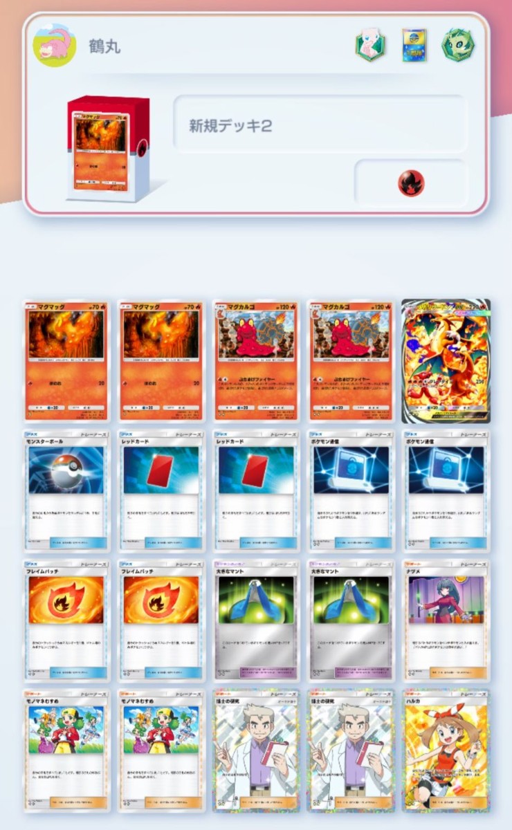 ポケモンがマグカルゴ単一というシンプルな構成ですが、ベンチを置くか置かないかなどの相手との駆け引きも楽しめる点が、非常に面白かったです。