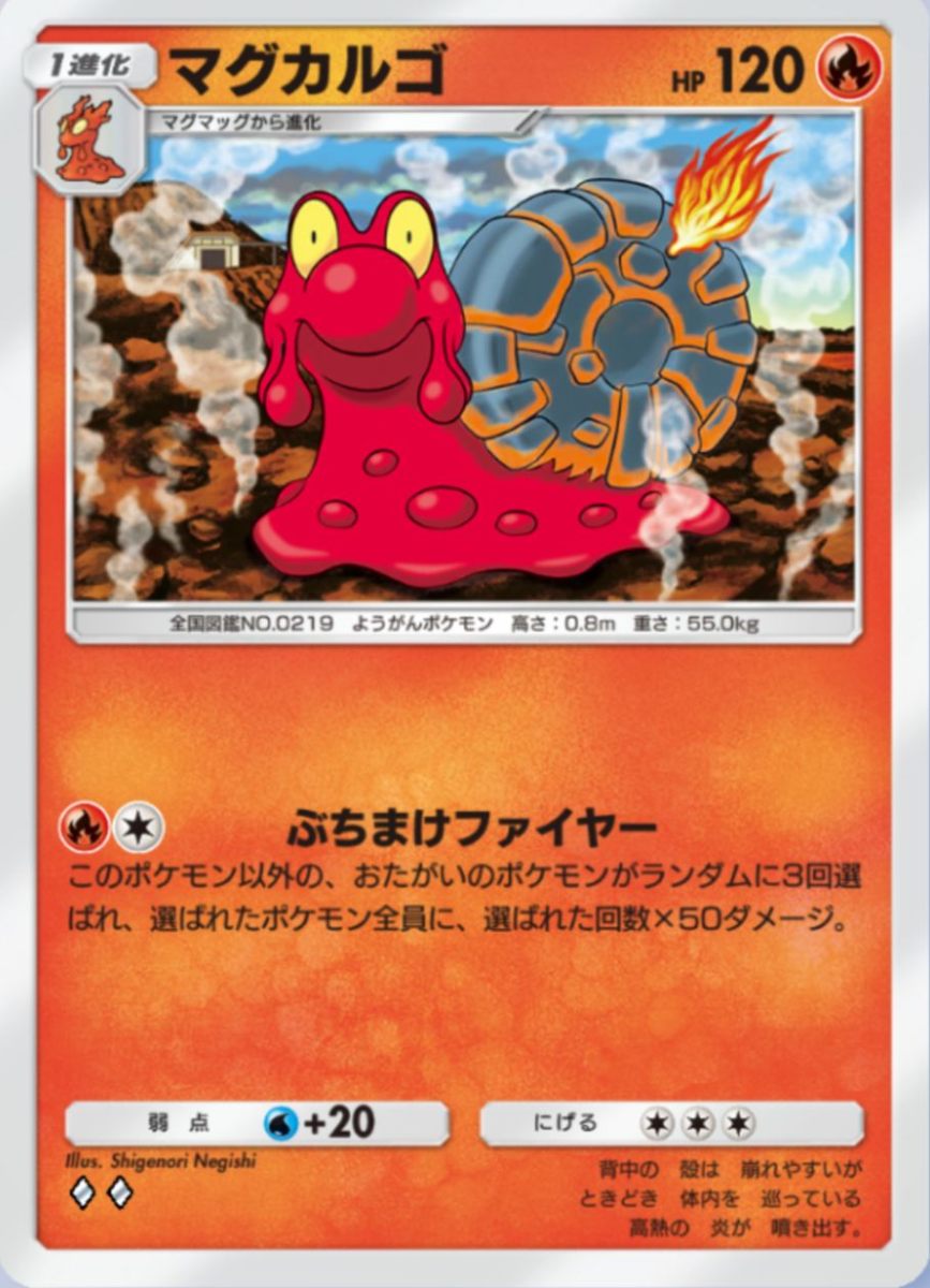 考案者様いわく、マグカルゴが一度ぶちまけたら即退場になることもあるため、次のターンに即攻撃するための採用となります。