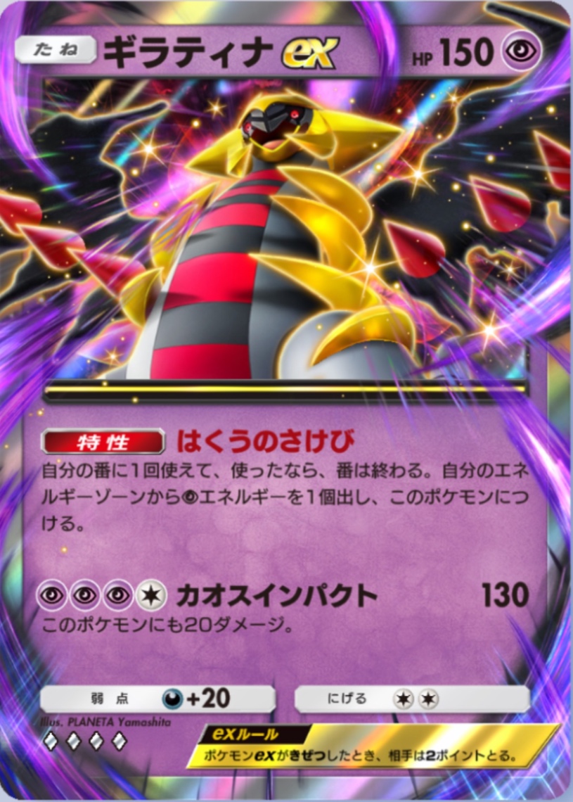 ギラティナex、このデッキのフィニッシャー、技には反動ダメありますがジバコと違いタネポケで130打点は強いかと、クレセリアに手張りが集中しても自力でエネ加速できるのも強いですね