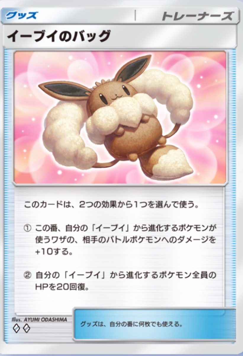 トレーニングエリアとイーブイのバッグを組み合わせることで、2ターン目にして最大110ダメージから150ダメージという高火力を実現できます。