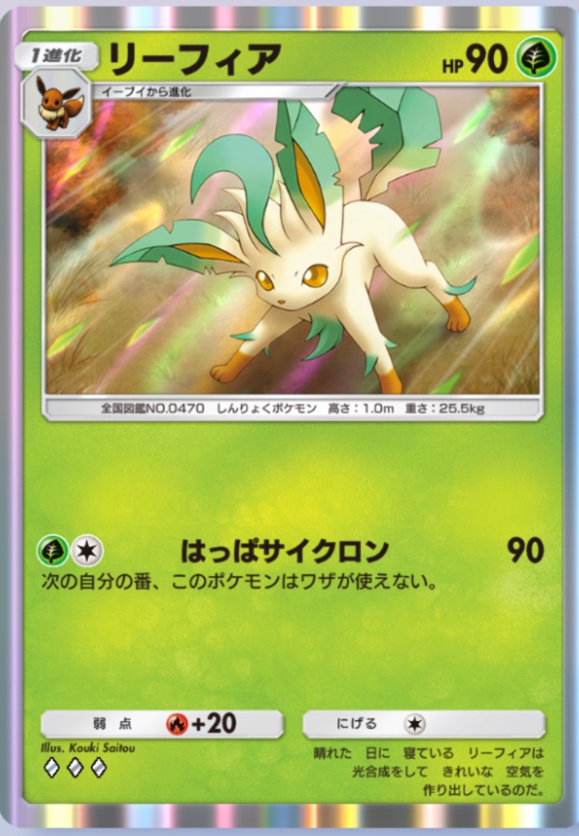 バトル場にリーフィア、ベンチにリーフィアexを配置することで、なんと先行で90ダメージを与えることができます。